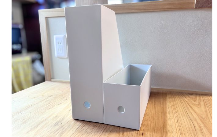 そこで取り入れてみたのが、無印良品の『再生ポリプロピレン入りファイルボックス』です。