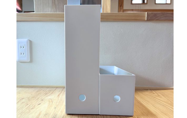 同じく無印良品が登場している『再生ポリプロピレン入りスタンドファイルボックス』と比べてみると、高さが低めに設計されています。