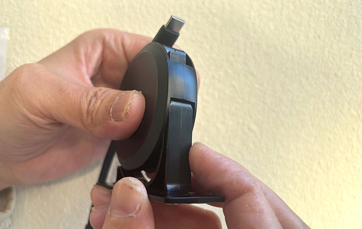 スタンドの底面が粘着テープになっていて、さまざまな場所に設置できます。