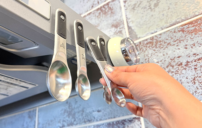 「計量スプーンはリングでまとめるもの」と思い込んでいましたが、マグネットという発想に出会って、ちょっと世界が広がった気がしました。