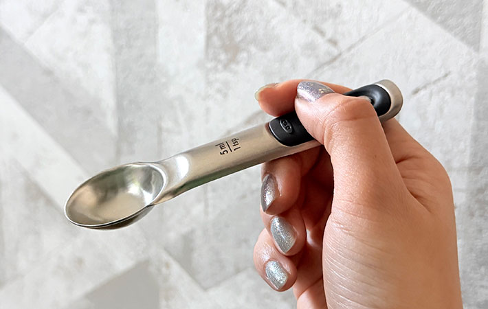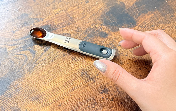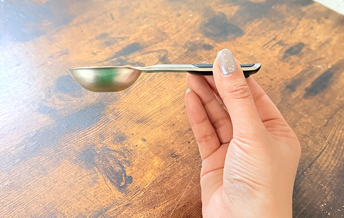 これまで使っていた計量スプーンだと傾いてヒヤッとすることも多かったのですが、そのストレスが減りました。