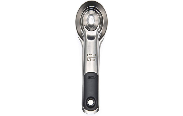 オクソーの『ステンレスメジャースプーン マグネット』は、大さじ1、小さじ1、小さじ1/2、小さじ1/4の4本セット。