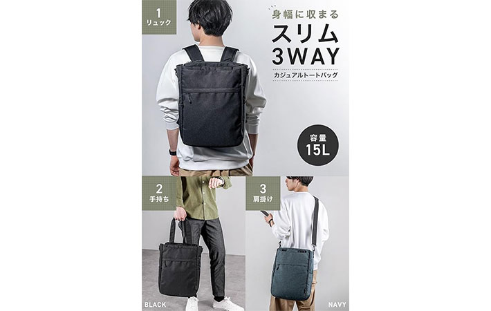 オン・オフ両方対応可能が嬉しい、使い道いろいろな通勤リュックが見逃せないぞ ファッション By - akira 更新:2026-02-25 ※本記事はUPDATEが独自に制作したコンテンツです。また、本記事を経由して商品の購入が発生した場合に、ECサイト等から送客手数料を受領することがあります。 2~3月といえば、進学や就職など、春からの新生活を控えている人が身の回りのものを新調する頃です。 中でも、通勤・通学に使用するリュックサックを検討する人は多いでしょう。 機能性があってビジネスシーンにも対応できそうなリュックサックが1つあると、何かと使い勝手がいいですよね。 一口にリュックサックと言っても機能面のポイントはいくつもありますが、どれを選べばいいかを迷ってしまったら、まずはこちらを見てみてください! Amazonで見る 楽天市場で見る 本記事で紹介するのは、『サンワサプライ』が販売している『3WAYトートバッグ 200-BAG179』です。 「リュックサックの話をしているのに、なぜトートバッグを?」と思った人もいるかもしれません。 実はこの『3WAYトートバッグ 200-BAG179』、リュックサックにも、そしてショルダーバッグにもなるデザインなのです。 縦型のトートバッグが基本形ですが、本体背面のポケットからショルダーベルトを出せば、リュックサックに早変わり! また、同梱のナイロンベルトを取りつければ、肩から下げるショルダーバッグにもなります。 用途や状況に合わせてスタイルを変更できるので、オン・オフを問わずに使用できそうですね。 ここからはリュックサックとしての使い方にフォーカスして、詳しく見ていきましょう。 カラーバリエーションはブラックとネイビーの2色があり、筆者はネイビーを選択。 落ち着いた色味なので、スーツなどのフォーマルな服装にも合わせられそうです。 『3WAYトートバッグ 200-BAG179』はポケットが多いことも特徴の1つ。 内ポケットやPCスリーブはもちろん、表面にもファスナーポケットや、ボタンつきポケットがあります。 トートバッグの取っ手をしまっておくことも可能 取り出す機会が多いものは表面のファスナーポケットに入れるなど、用途に合わせて使い分けると便利でしょう。 PCスリーブは14インチのノートパソコンまで対応。筆者が普段使用している13インチのモデルも、もちろん入ります。 バッグ背面には厚みのあるクッションが内蔵されているので、多少の衝撃であれば吸収してくれそうです。 ショルダーベルトを装着して、『3WAYトートバッグ 200-BAG179』を背負ってみた様子がこちら。筆者は身長180cm台後半です。 リュックの中にはA4ノートはもちろん、折りたたみ傘や水筒なども入り、見た目のわりに容量が大きめ。 スリムな形状でありながら15Lまで入るので、デスクワークが中心の人なら問題ないでしょう。 デスクの下に置いておいても邪魔になることはなさそうなサイズ感なので、必要な時に中身をサッと取り出すこともできそうです。 仕事にも、ちょっとしたお出かけにも活躍してくれそうな『3WAYトートバッグ 200-BAG179』。 2026年2月下旬現在、Amazonでは手頃な価格帯で販売されているのも嬉しいポイントでしょう。 使い勝手がよく、手頃なリュックサックを探しているという人は、以下のボタンからチェックしてみてくださいね! Amazonで詳細を見る 楽天市場で詳細を見る [文・構成/UPDATE編集部] 出典 Amazon/楽天市場 関連ワード サンワサプライリュック検証 この記事をシェアする Share Post LINE