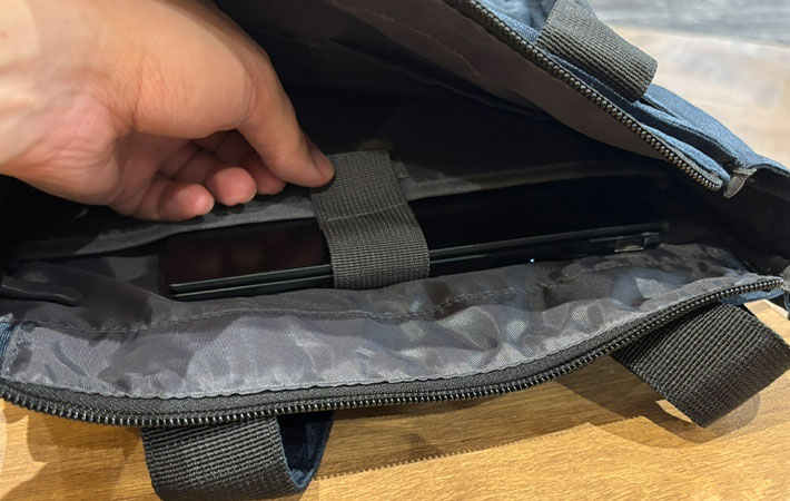 バッグ背面には厚みのあるクッションが内蔵されているので、多少の衝撃であれば吸収してくれそうです。