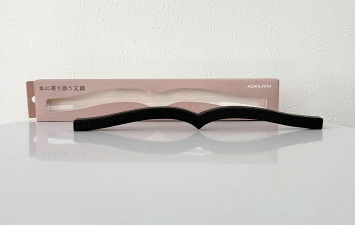 コクヨの『本に寄り添う文鎮』は、本のページを押さえるために設計された機能的なアイテム。