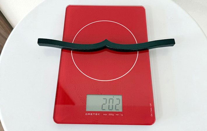 素材は、質感の良い鉄製。重さは約200gで、手に取るとずっしりとした重みがあります。
