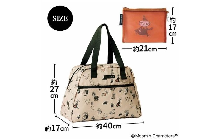 気になる内容はムーミン谷の仲間たちが描かれた、大きめサイズのボストンバッグとポーチのセット。