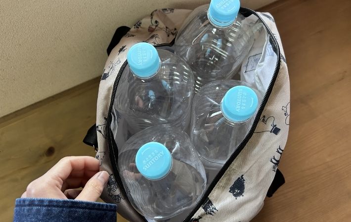 2Lのペットボトルを入れてみたところ、なんと4本も収納することができました。