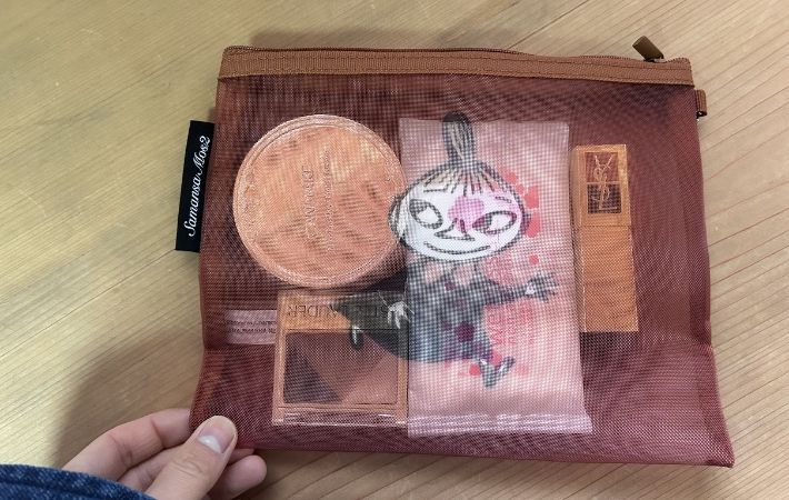 セットのポーチも荷物の収納と整理に便利。筆者はメッシュで中身が透けているデザインがおしゃれで気に入っています。