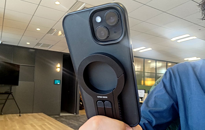 金属製でしっかりとした本体は、商品名の通りMagSafeに対応。マグネットでiPhoneをくっつけることができます。