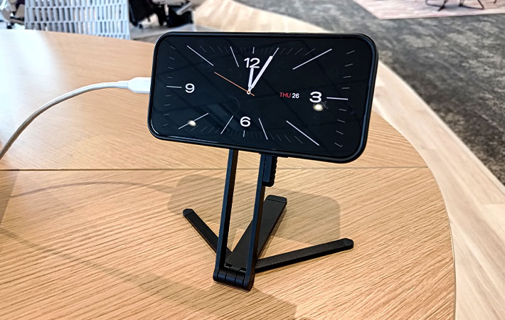 iPhoneと組み合わせれば置き時計に! しっかり頑丈でコンパクトな便利アイテムが見つかりました ガジェット By - akira 更新:2026-02-26 ※本記事はUPDATEが独自に制作したコンテンツです。また、本記事を経由して商品の購入が発生した場合に、ECサイト等から送客手数料を受領することがあります。 最近は腕時計をせず、スマホを時計代わりにするという人も増えています。 そんな人にピッタリな機能が、iPhoneについているのをご存じですか。 実は、iPhoneには充電中に本体を横向きにすると、置き時計のような画面が表示される『スタンバイ機能』というものがあります。 そんなスタンバイ機能を活用しつつ、作業スペースやカフェのテーブルなどでスぺパを高めてくれる、便利なアイテムが『サンワサプライ』から出ているので見てみましょう。 Amazonで見る 楽天市場で見る 本記事で紹介するのは、サンワサプライの『MagSafe対応スマホスタンド 200-STN097BK』です。 金属製でしっかりとした本体は、商品名の通りMagSafeに対応。マグネットでiPhoneをくっつけることができます。 MagSafeがついていないAndroidのスマホでも、付属のメタルリングを貼りつければ使用できるので安心です。 マグネットに取りつけるスマホは、縦・横向きのどちらにも対応。 横向きにして充電すれば、前述のスタンバイ機能が活用でき、縦向きにすれば普段通り操作することができます。 スタンドの立て方はとてもシンプル。本体に収納されている脚部分を、ぐるっと回すようにして取り出すだけです。 脚部分を回す角度は自由に調節可能。重心のバランスと見やすさが両立する角度を探してみましょう。 また、脚部分は大小2種類のパーツに分かれていて、小さいパーツは左右に広げることができます。 この仕組みを活用することで、スマホスタンド、あるいは三脚としても活躍してくれるのが『MagSafe対応スマホスタンド 200-STN097BK』のいいところ。 iPhoneのスタンバイ機能と組み合わせると、置き時計としてもバッチリ機能します。 作業スペースのスぺパ向上から、思い出の1枚を撮影する際のお供まで、幅広く活躍する『MagSafe対応スマホスタンド 200-STN097BK』。 iPhoneを取りつけるリング部分はスライド式のカラビナになっているので、バッグの取っ手部分に引っかけて持ち運ぶことができますよ。 カラビナを使わなくても、本体サイズそのものがコンパクトなので、持ち運びにはあまり困らなそう。 筆者のiPhone 15と比較しても、大きさはほとんど同じです。 これなら、バッグやリュックのポケットなどに入れておいてもかさばることはないでしょう。 シンプルかつ使い勝手のいい『MagSafe対応スマホスタンド 200-STN097BK』ですが、ちょっと気になるポイントもあります。 1つ目は、脚部分を取り出す際に力が要ること。 微妙な角度調整をしたい時は力加減が難しく感じることもありました。 しかし、そのぶん安定感が高く、しっかりとした作りであること表れとも言えるでしょう。 2つ目は、リング部分が可動しないこと。 スタンド全体を動かして角度調節をする仕組みですが、「リング部分だけをクイクイッと動かすことができれば、もっと便利だったかも…」というのが本音でした。 ただ、これら2点は普段使う上で支障があるレベルではありません。 iPhoneをスタンバイ機能で置き時計化することで腕時計よりも見やすく、それでいて場所もあまり取らないので、作業中のプチストレスが減った印象です。 必須アイテムというほどではありませんが、あると便利な『MagSafe対応スマホスタンド 200-STN097BK』。 何かと使い勝手がいいので、この機会に1本検討してみてはいかがでしょうか。 Amazonで詳細を見る 楽天市場で詳細を見る [文・構成/UPDATE編集部] 出典 Amazon/楽天市場 関連ワード サンワサプライスマホスタンド検証 この記事をシェアする Share Post LINE