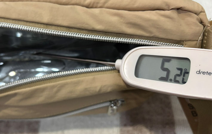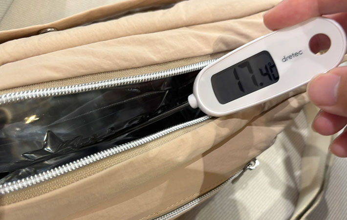 バッグ内部の温度を測ってみたところ、結果は17.4℃でした。