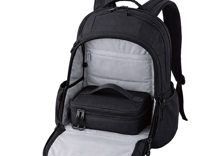 サイズ感の問題で「ランチバッグを横にしないとバッグに収まらない」というシチュエーションがあります。ところが、『保冷ランチボックスポーチ maneuver』なら、一般的なサイズのリュックにスポッと収まります。