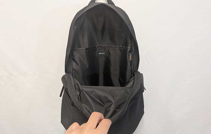 ちなみに、ケユカのロゴはメインコンパートメントを開けないと見えないので、目立つマークが苦手な人にもおすすめですよ。