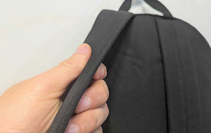ショルダーベルトも厚みがあるので、重いものを入れても背負いやすく、疲れにくい形状になっています。