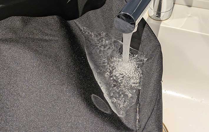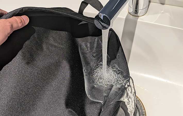 せっかくなので水を流すだけでなく、数秒溜めてみたのですが問題なし。これなら突然の雨でも安心して荷物を守れます。