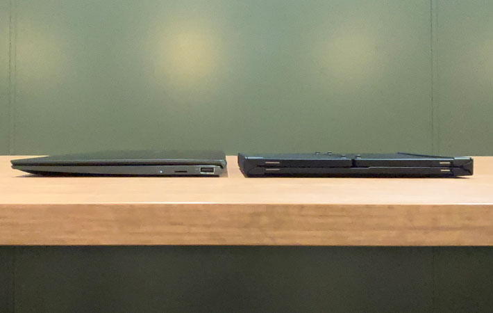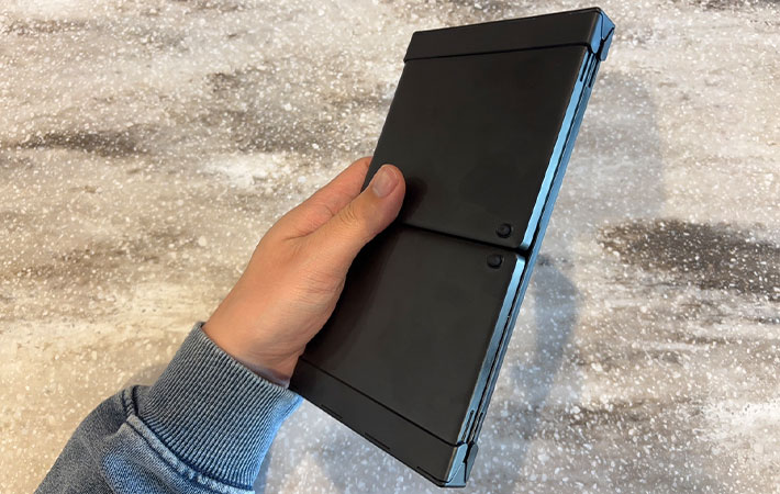 ノートPCの機種によっては、折りたたんだ『XK01』とPC本体の厚みがほとんど変わらないということもあるでしょう。まさに筆者はそのような状態でした。