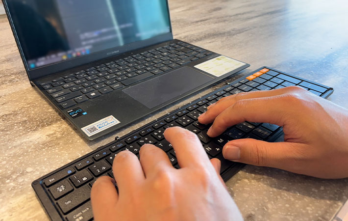 普段、社用ノートパソコンとワイヤレスキーボードを組み合わせて使用している筆者。