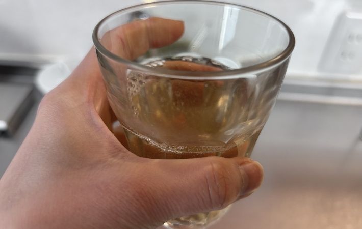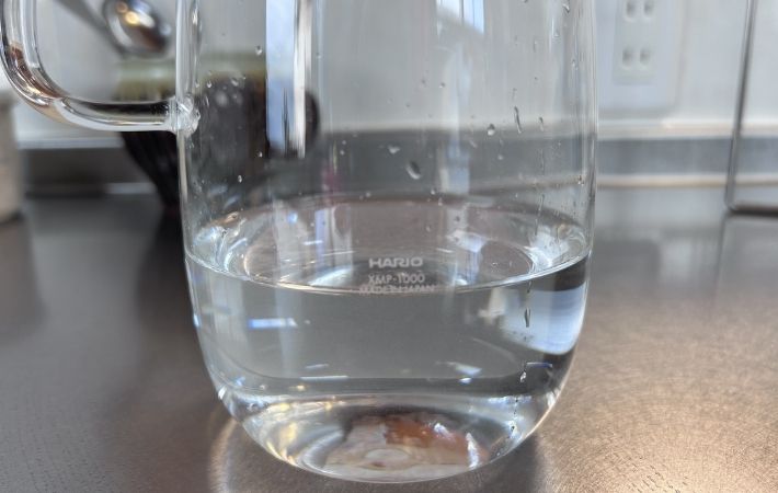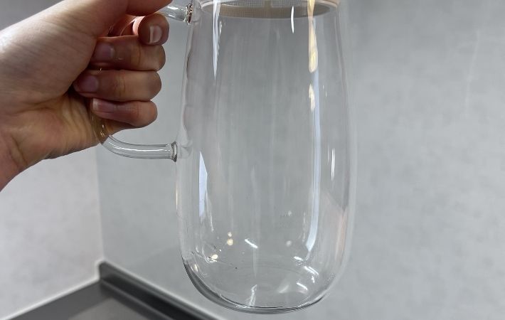 抽出が終わったら水を足します。持ち手の下端が1000㎖の目安です。