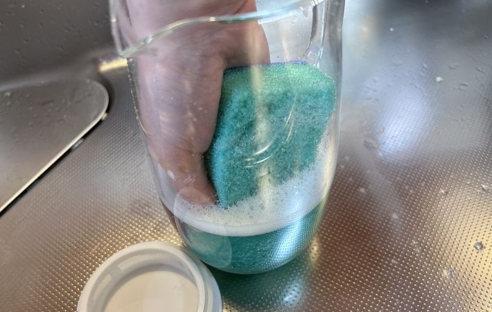 こういう容器って、長いブラシなどを使わないと底までしっかり洗えないこともありますよね。
