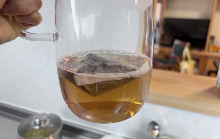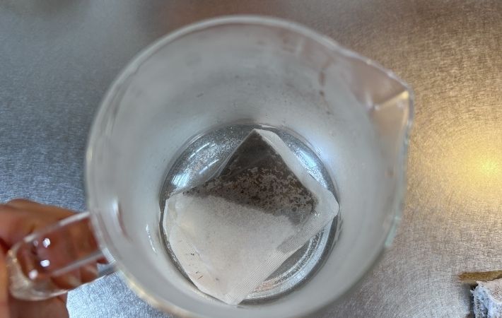 加熱が終わったらそっと取り出し、ティーバッグを入れて、約5分かけて抽出します。