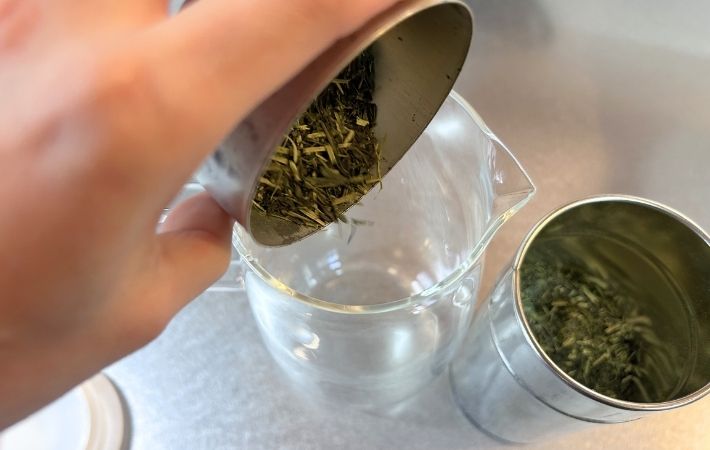 ガラス製だからこそ、緑茶のきれいな色合いも楽しめるのもいいなと思ったポイント。
