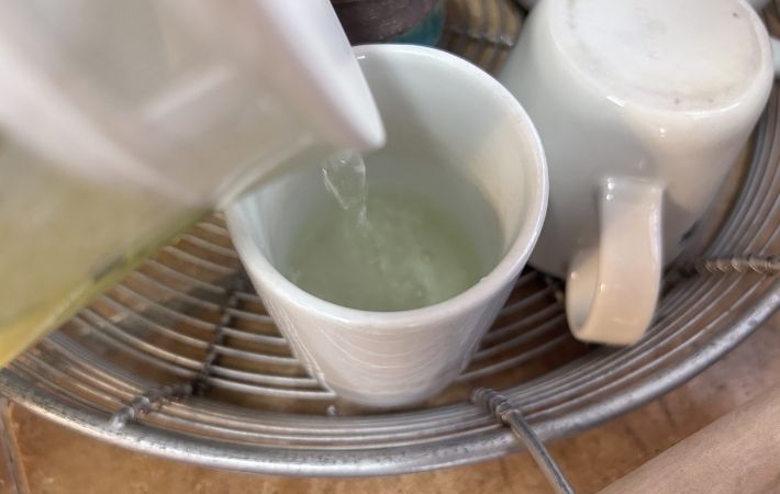 『むぎちゃん』で作った麦茶は、色もきれいで透明感があり、香ばしさを感じるすっきりとした味わい。