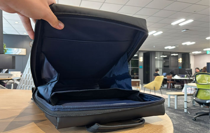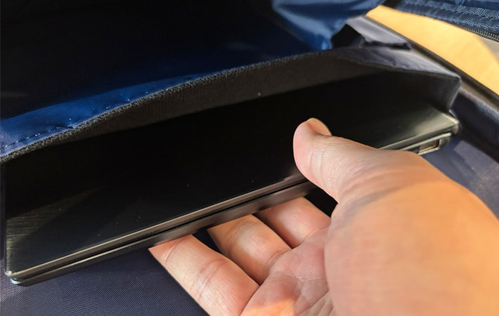 PCスリーブの反対側についている大きめのスリーブを活用すれば、書類などがゴチャゴチャするのも防げます。