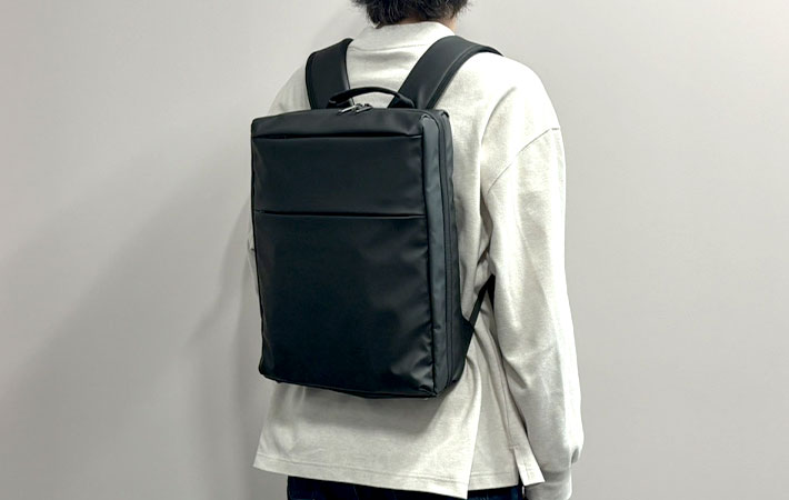 通勤・通学に必要なものはひと通り入る『アーレイC』は、背負ってみるとコンパクト。