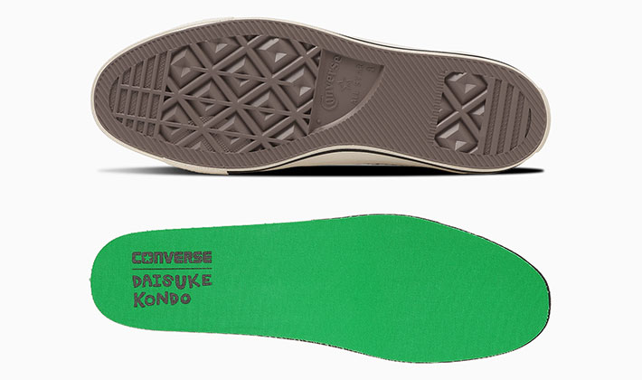 インソールはビビッドなグリーン。DAISUKE KONDO氏のサインがプリントされています。