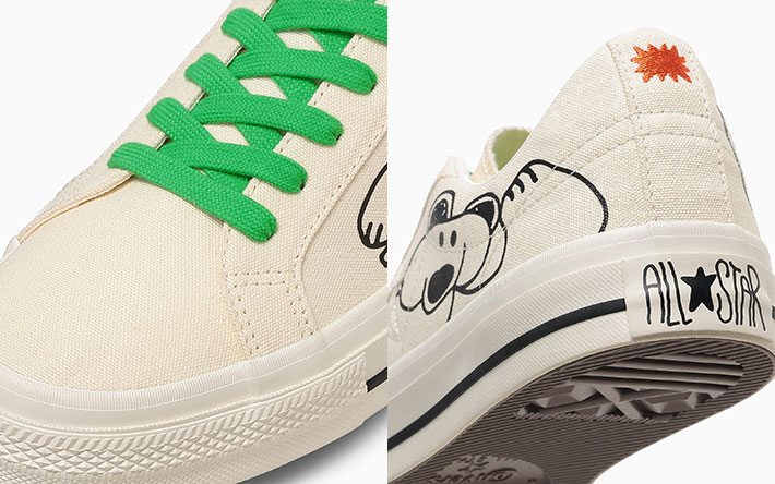 ベースとなっているのは、『コンバース』の代表作の1つとも言うべき『ワンスター』。ベースカラーはホワイトで、そこに多彩なイラストが描き込まれたのが『ONE STAR CANVAS/DAISUKE KONDO』(ワンスター キャンバス/ダイスケ コンド)です。