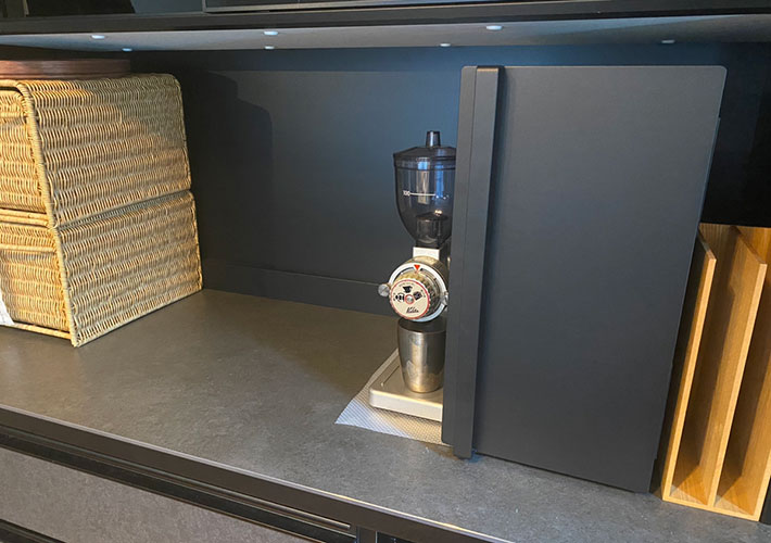 高さのある下段には、コーヒー豆のキャニスターやストックを収納。