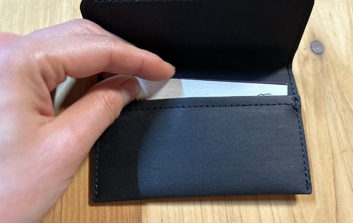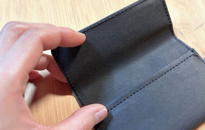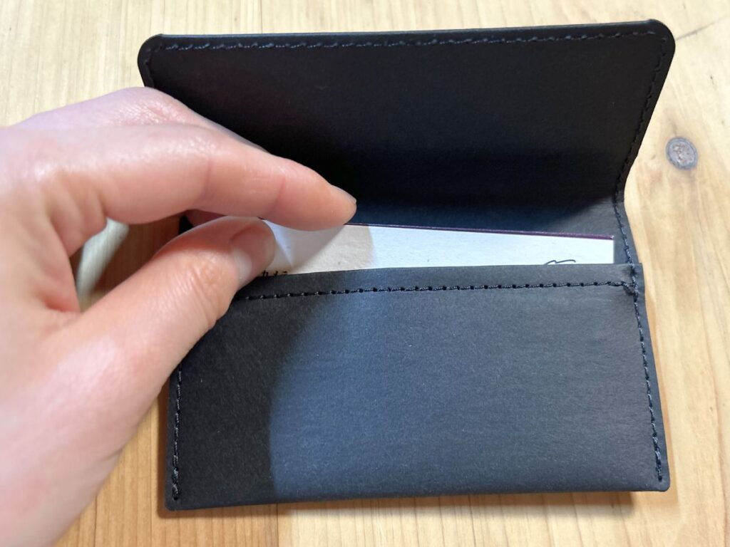 また、大きいカードや名刺だと縫い目に引っかかり、スムーズに出し入れしにくかいと感じる場面もありました。