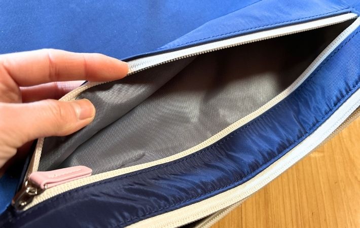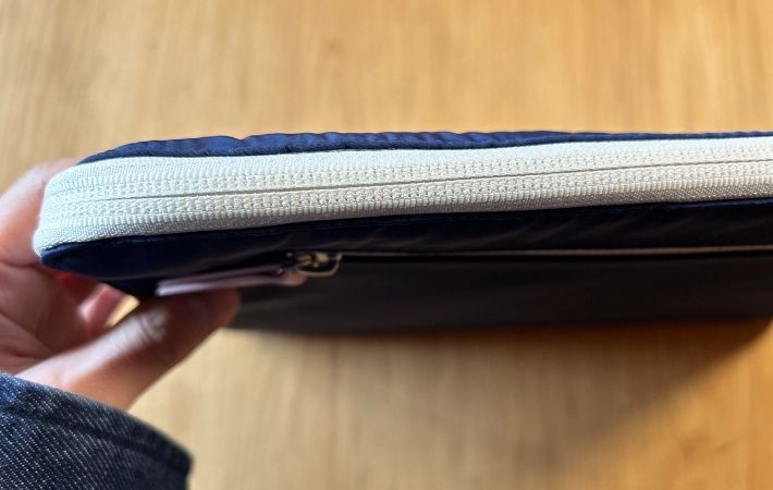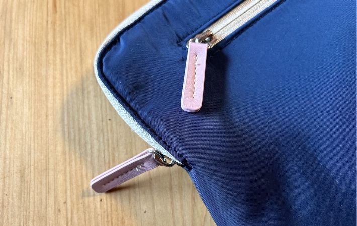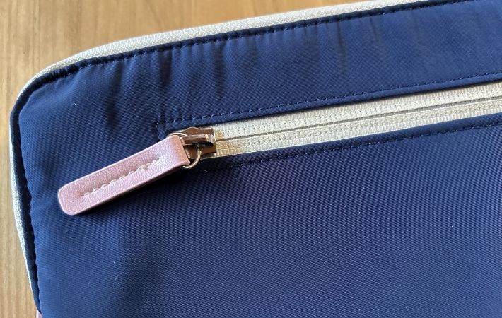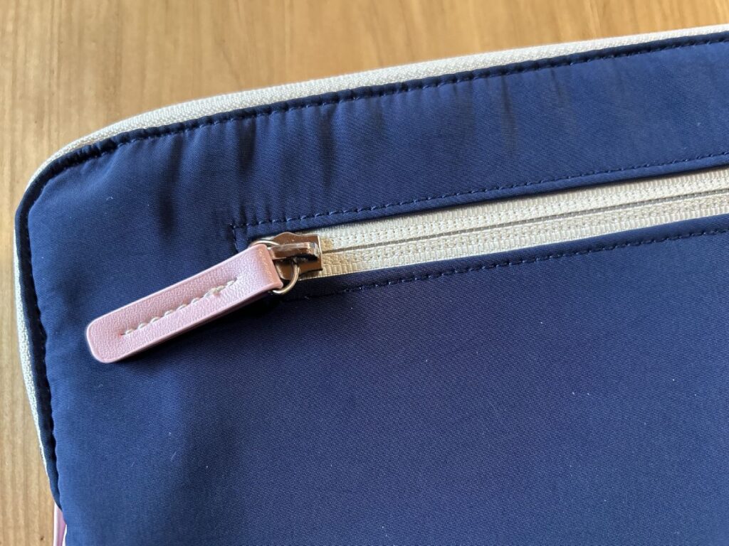 ファスナーの引き手が大きめにデザインされているおかげで開閉はとってもスムーズ。パソコンの出し入れもしやすかったです。
