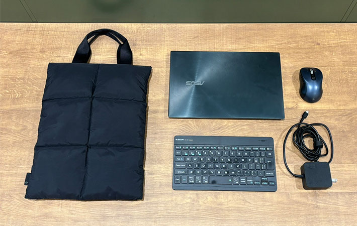 そんな『Puffy Laptop Sleeve』に筆者が入れた物は以下の通り。
