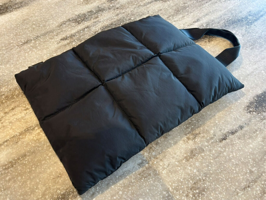 モコモコとした素材感は緩衝材を兼ねていますが、それゆえに少々かさばるのが唯一の悩みどころかも。