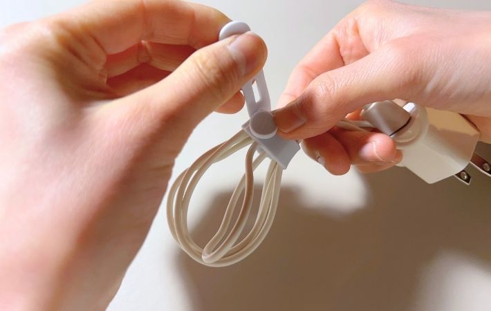 ケーブルをきつく締めつけることがないため、コードを傷つけにくい設計になっています。