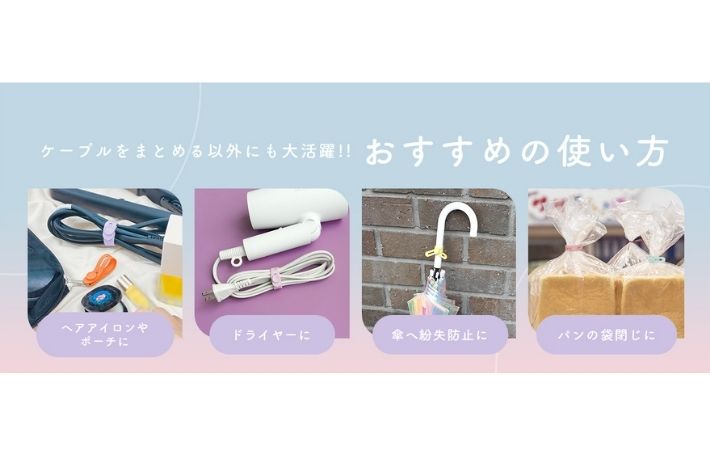 やわらかいシリコン素材でできており、ケーブルをやさしくまとめられるのが特徴。繰り返し使えるため、経済的なのも嬉しいポイントです。
