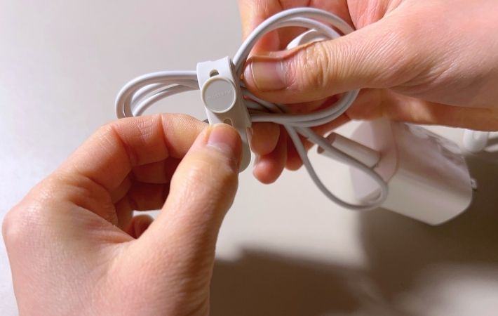 まずは、絡まりがちなケーブルをMOTTERUの『sofumo ケーブルバンド』でまとめます。