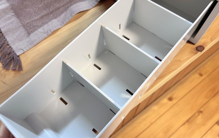 しかし、このケースなら引き出しを閉めるだけで、中身が見えず、中がごちゃついていてもバレません!