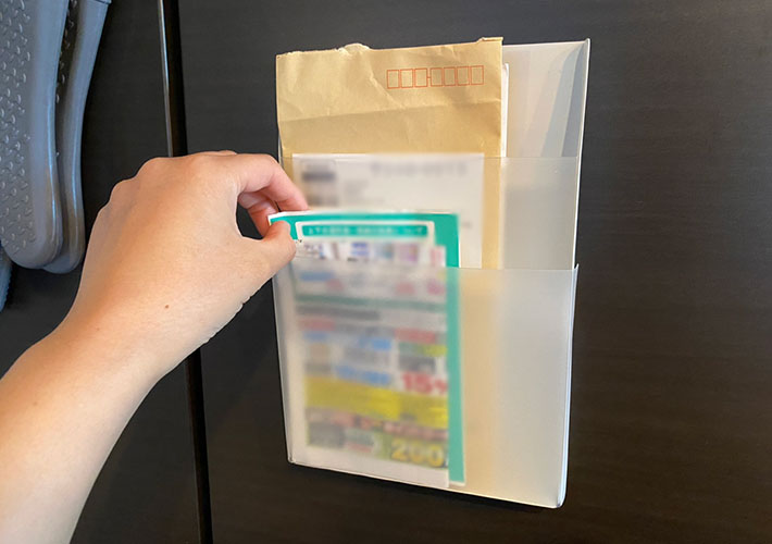 「さすが無印!こういうの待ってた」「アイディアがめちゃくちゃいい」 溜まった封筒やチラシ…冷蔵庫にコレをぺたっと貼ったら? 生活雑貨 By - かねやん 更新:2026-03-17 ※本記事はUPDATEが独自に制作したコンテンツです。また、本記事を経由して商品の購入が発生した場合に、ECサイト等から送客手数料を受領することがあります。 チラシや封筒、DM、保育園や学校からのプリント…。毎日普通に暮らしているだけで、書類って勝手にたまっていきませんか。 「時間がある時に読もう」とその辺に放っておいた紙が、あとになって見つからず焦ってしまうことも…。 そんな置き場に困るハガキや封筒などを、手の届くところにさっと収納できる、『無印良品』の『ポリプロピレン マグネット付きポケット収納 A5用』。 Amazonで無印良品『ポリプロピレン マグネット付きポケット収納 A5用』を見る 無印らしいポリプロピレン製のシンプルなファイルケースなんですが、裏面にマグネットがついているのが最大の特徴。 玄関ドアや冷蔵庫などに貼って浮かせることができるので、置き場に困らず使い勝手抜群なんです! 我が家でも大活躍中のアイテムなんですが…どこに収納しているかお分かりでしょうか。 そう、冷蔵庫のこのわずか3cm程度の隙間!デッドスペースとすら言い難い、使い道のなさそうなこのスペースにスッと収まってくれています。 それもそのはず、厚みはたったの約2.3cmというスリムさ! こういった冷蔵庫の隙間に貼りつけておけるので、すぐに手に届くと同時に、表には出して置きたくないものを収納するのにぴったりです。 横15.7cm×高さ23.5cmほどのA5サイズなので、長3封筒やハガキなど、暮らしの中で受け取る頻度の高い書類がすっきり収まります。 重さも約250gと軽量なので、場所を移動するのも楽チン。 マグネットもしっかり強力で、うっかり落として床を傷つけてしまう…という心配もそこまでなさそうです。 ポケットは高さが異なる2段式になっていて、仕分けがしやすいのも嬉しいポイント。 さらに手前のポケットは可動式になっていて、入れる量が多い時は、前に引き出すことができます。 使う時だけマチを広げられるので、普段は邪魔にならないというアイディアが素晴らしい…! 筆者はポストに溜まったハガキやプリントを一時的に入れておき、料理の合い間にさっと手に取って目を通す…という時間の使い方ができて、かなり助かっています! ポリプロピレン素材で汚れや水に強いので、キッチンや玄関、洗面所、デスクなど、家中のあちこちで重宝するでしょう。 書類はもちろん、電卓やメモ帳など、文具周りの小物を整理してもよさそう。 ちなみにこのシリーズ、3サイズあるので、用途に合わせて使い分けるのもおすすめ。 一番コンパクトなA6サイズは玄関でマスク入れに 筆者はA5サイズと別に、一番小さなA6サイズを玄関に設置していて、出発前にさっと取り出せるように子供用と大人用のマスクを仕分けて収納しています。 Amazonで『ポリプロピレン マグネット付きポケット収納 A4用』を見る Amazonで『ポリプロピレン マグネット付きポケット収納 A6用』を見る 手軽に収納スペースを増やすことができる、『ポリプロピレン マグネット付きポケット収納』。ネットの口コミはというと…。 【ネットの口コミ】 ・冷蔵庫の横に。ちょっと書くラベルやペン、食品パッケージについた応募券なんかを入れて使ってます。シンプルな見た目で馴染んでいます。 ・ハガキ、封筒などが入れられて便利。このケースに入れておくと置き忘れもなくなり便利です。全サイズ購入したので、用途によって使い分けられて重宝しています。 ・冷蔵庫にくっつけて家族の処方薬を入れています。磁石もしっかりしていて落ちてくることもありません。飲み忘れを防ぐことができています。 デザインも機能性もシンプルで無駄のない、無印良品らしいアイディア収納アイテムです。 ペタッと貼るだけで、ごちゃつきがちな書類や小物の定位置を作れるので、自然と家の中が整っていくはず。 気になった人はサイズ違いで揃えてみてはいかがでしょうか! Amazonで無印良品『ポリプロピレン マグネット付きポケット収納 A5用』を見る [文・構成/UPDATE編集部] 出典 Amazon 関連ワード 収納無印良品 この記事をシェアする Share Post LINE