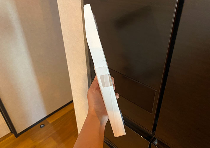 そう、冷蔵庫のこのわずか3cm程度の隙間!デッドスペースとすら言い難い、使い道のなさそうなこのスペースにスッと収まってくれています。