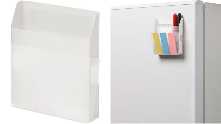 ・冷蔵庫の横に。ちょっと書くラベルやペン、食品パッケージについた応募券なんかを入れて使ってます。シンプルな見た目で馴染んでいます。