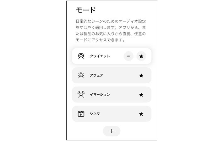 『QuietComfort Ultra Earbuds』には、好みやシチュエーションに合わせて選べる4つのリスニングモードがあります。