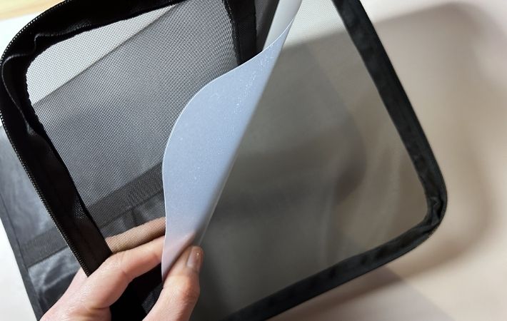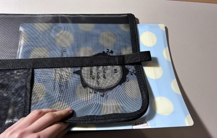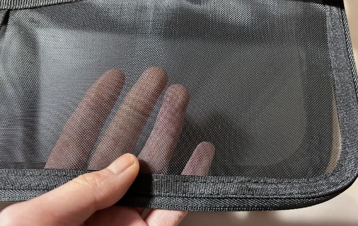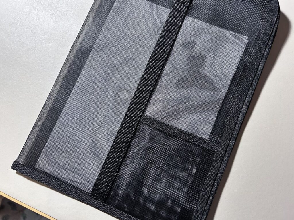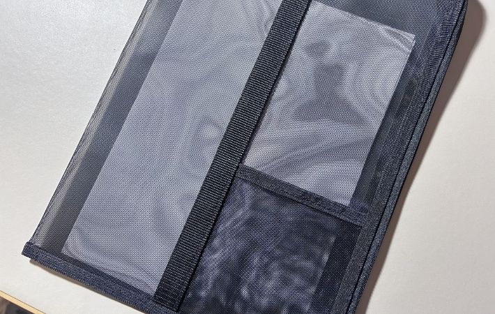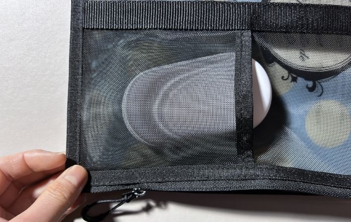 このケースはメッシュ素材で適度に透けて見えるので、外から中身が確認できます。
