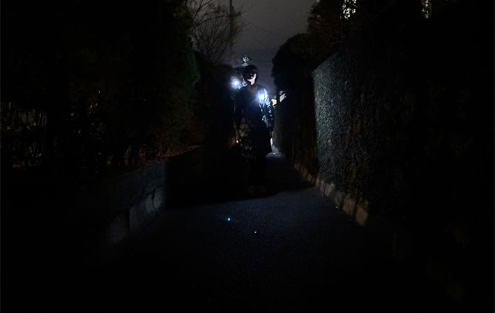 『NOMADY』の明るさを確かめるべく、ある日の帰り道に使用してみました。