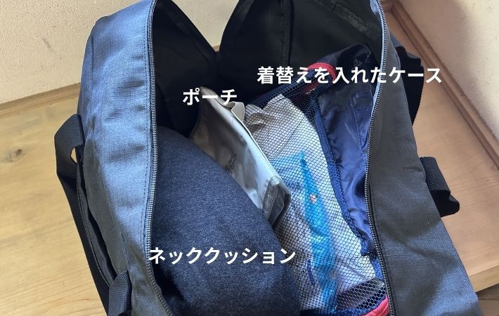 これなら、着替えや洗面ポーチ、ガジェットポーチはもちろん、ノートPCやA4ファイルも一緒に入れられそうです。
