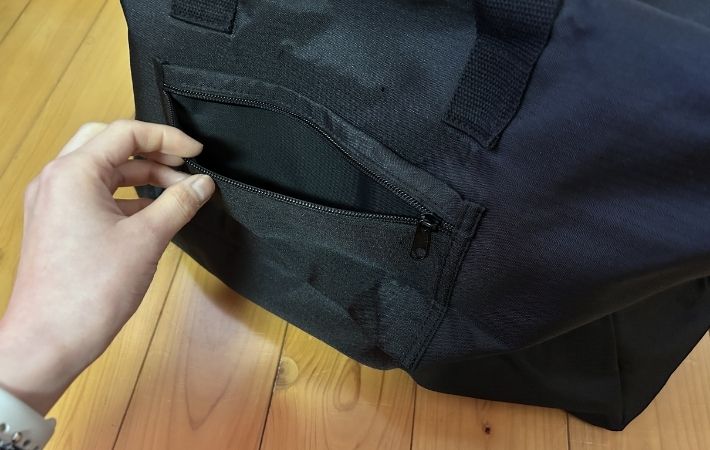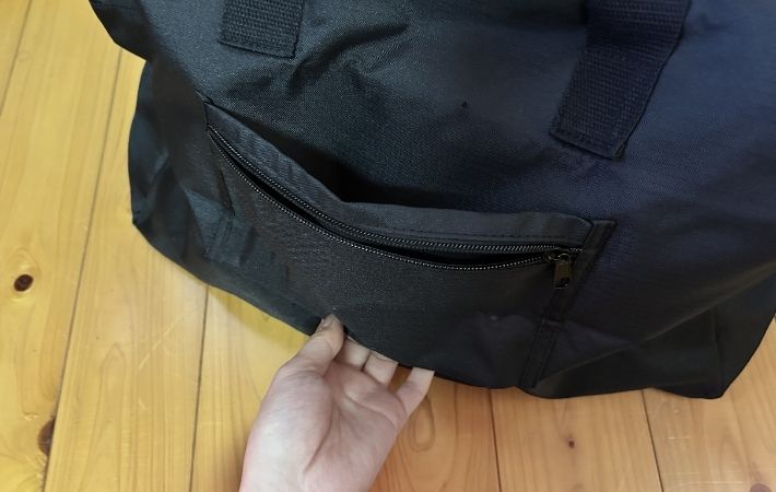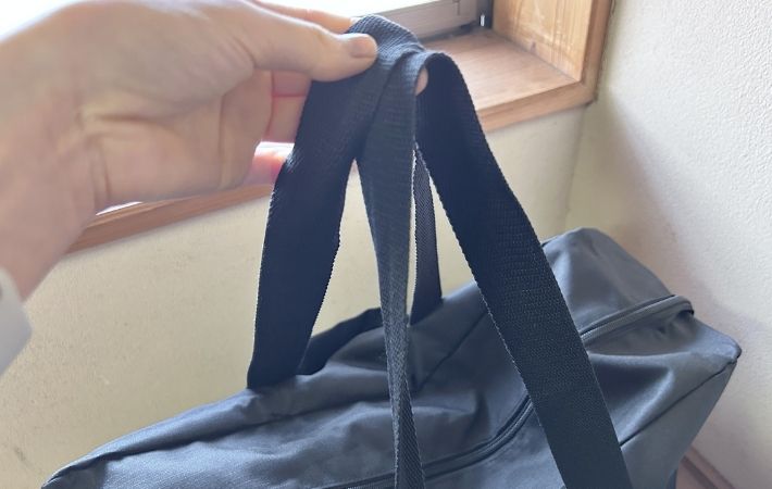 このバッグのよさはもう1つあります。それは、使わない時はペタンコに畳めること。