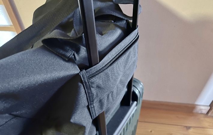 そして実はここ、キャリーケースのハンドルに通せる『キャリーバー通し』になっているのです!