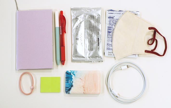 すべて、もともとバッグのポケットや別のポーチに散らばっていたアイテム。これらを、『パンケース』なら見た目もスッキリと収納することができます!
